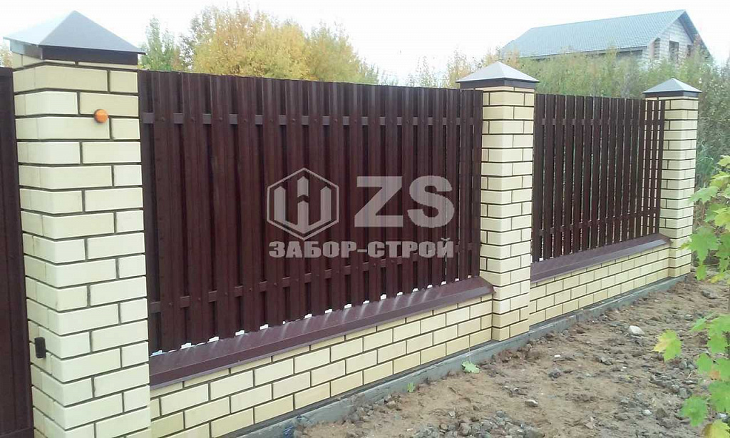 - Забор на ленточном фундаменте из евроштакетника 35 метров