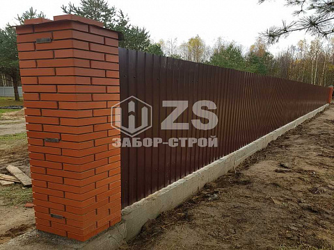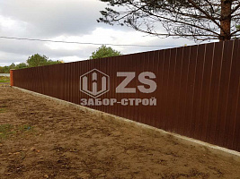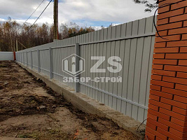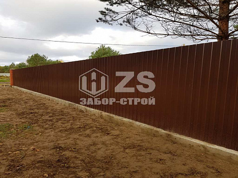 - Забор на ленточном фундаменте из профнастила 65 метров