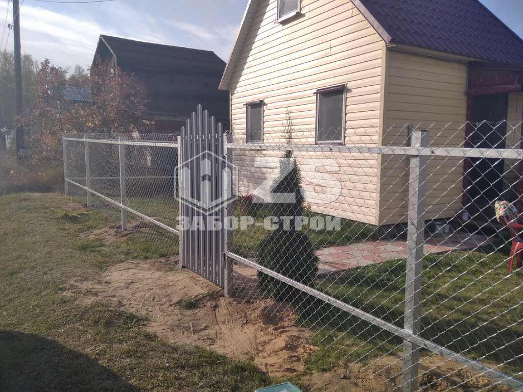 - Забор на столбах с утрамбовкой щебня из сетки рабицы 20 метров