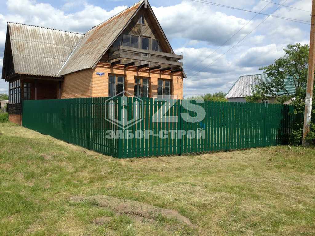 - Забор на забивных столбах из евроштакетника 35 метров