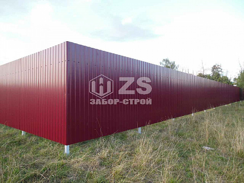 - Забор на забивных столбах из профнастила 50 метров