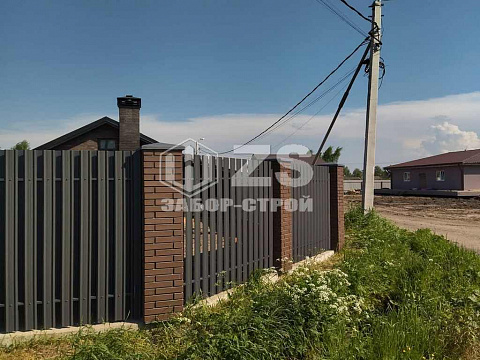 - Забор с кирпичными столбами из евроштакетника 45 метров
